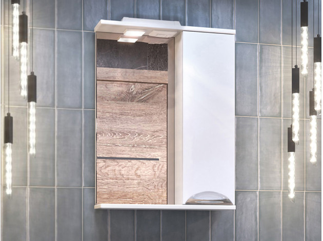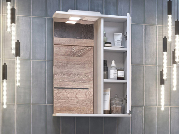 Зеркало с системой хранения Каллао Белый / Зеркальный 50 см С подсветкой Правая