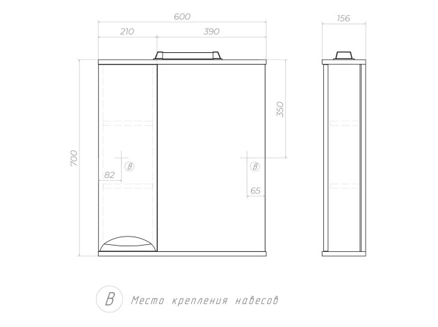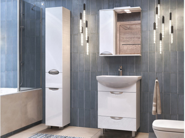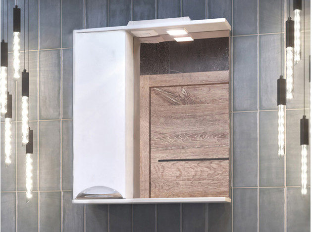 Зеркало с системой хранения Каллао Белый / Зеркальный 60 см С подсветкой Левая