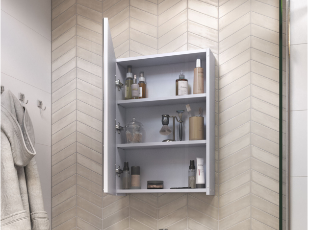 • Зеркальный шкаф Гранд станет удобным органайзером для хранения различных мелочей, например, косметики и уходовых средств. За гладкой поверхностью скрываются небольшие полки. Благодаря компактным габаритам модель идеально подходит для небольших помещений, где на счету каждый сантиметр.