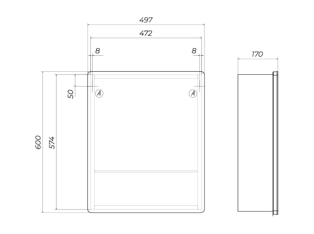 Зеркальный шкаф LED Геометрия Зеркальный 50 см Без антизапотевателя
