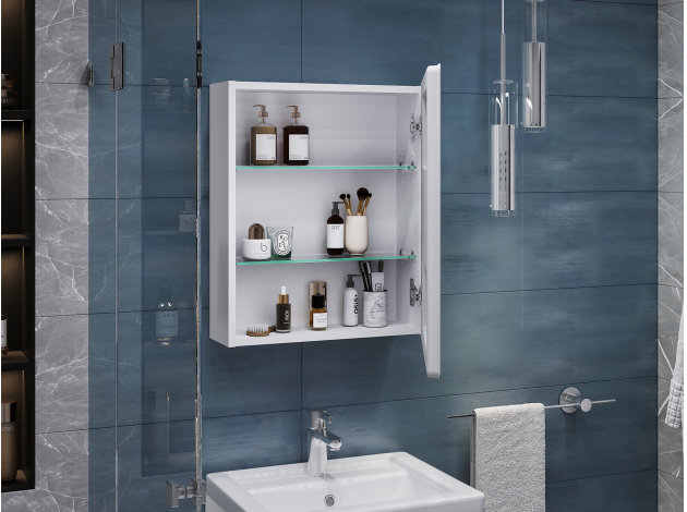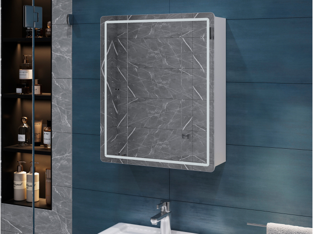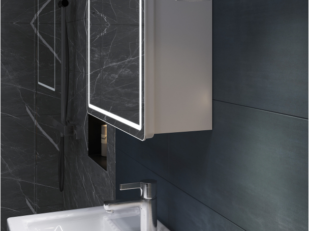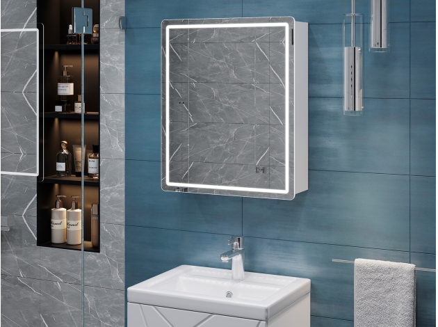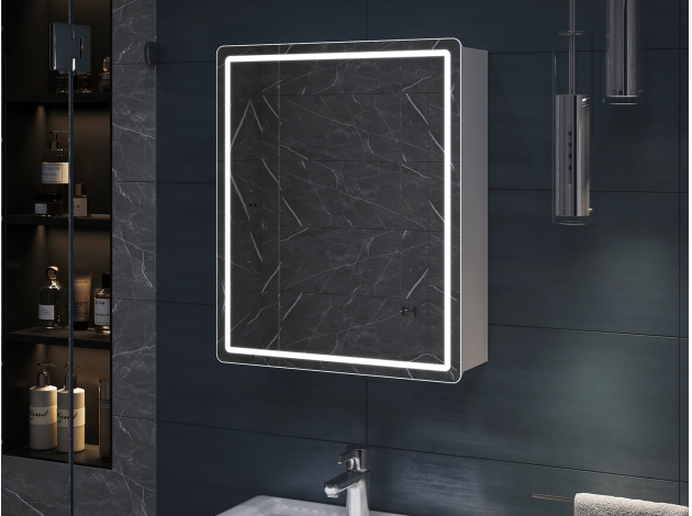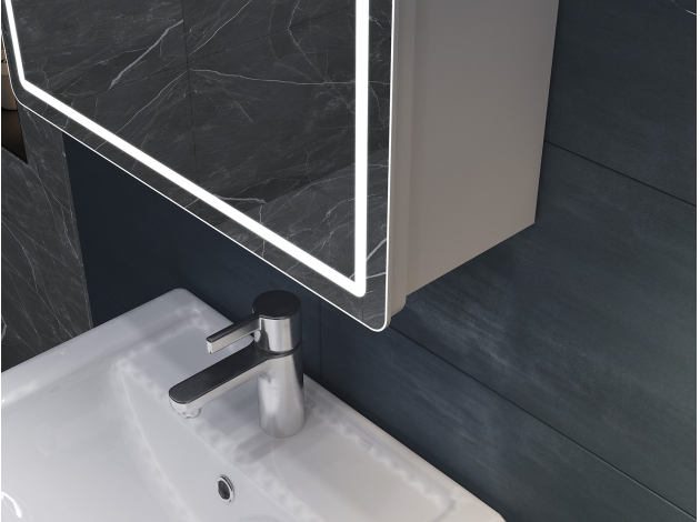 • Зеркальный шкаф LED Геометрия — практичное решение для современной ванной комнаты. Зеркальная дверца и встроенная LED-подсветка добавляют удобства эксплуатации. Внутри расположены полки, которые подходят для хранения косметики, средств гигиены и других необходимых мелочей. Влагостойкие материалы обеспечивают долговечность.